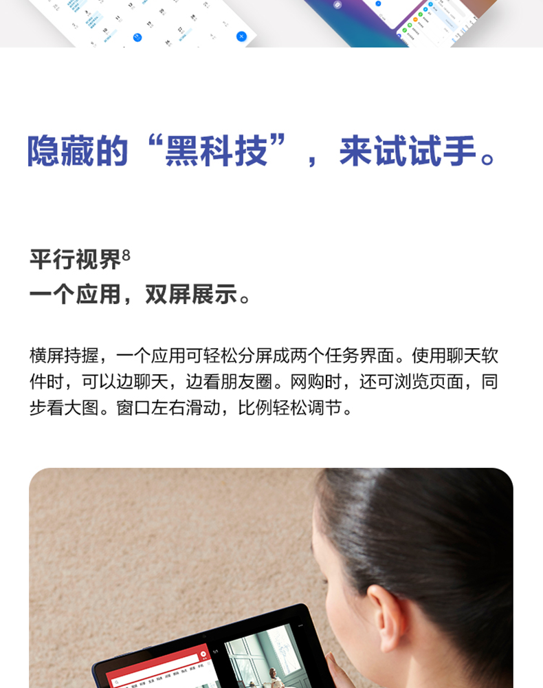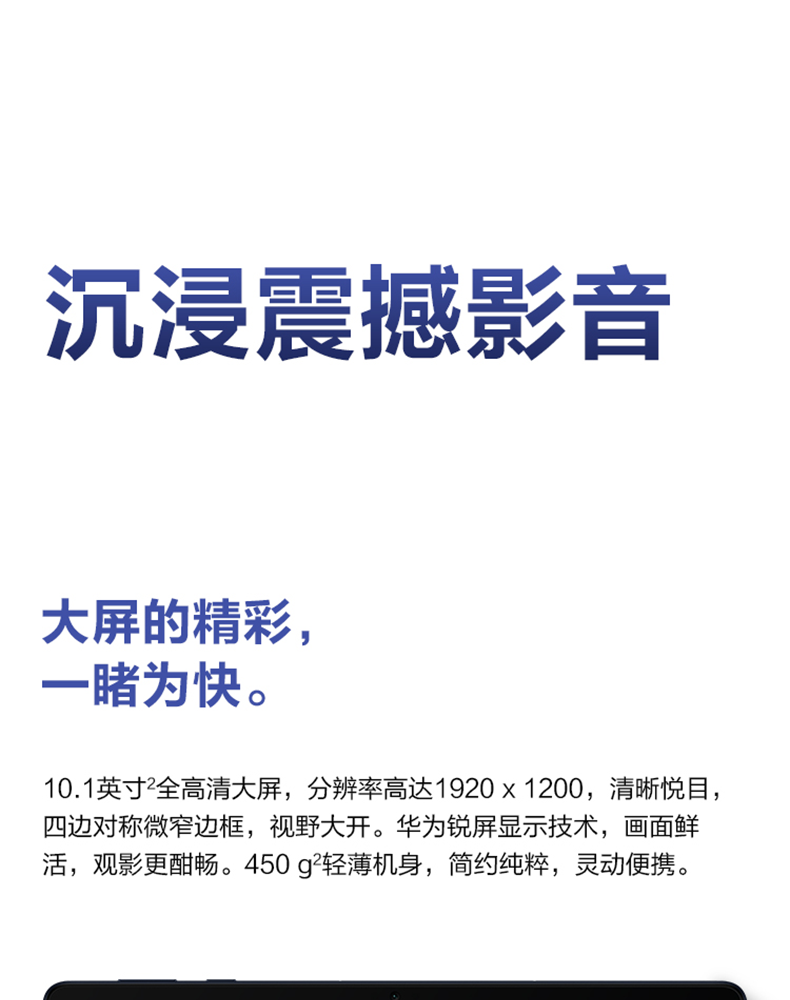 規(guī)格參數(shù) 其他屬性 售后服務(wù) 全國聯(lián)保 電信設(shè)備進網(wǎng)許可證編號 17-5043-201324 處理器品牌 海思 存儲 存儲類型 EMMC 內(nèi)存容量 4GB 存儲容量 4GB+64GB 4GB+128GB 顯示 分辨率 1920x1200 觸摸屏類型 IPS 十點觸控電容屏 像素 200萬 屏幕尺寸 10.1英寸 后置攝像頭像素 500萬 基本參數(shù) 品牌 Huawei/華為 型號 暢享平板2 接口類型 Nano-SIM 卡接口(僅全網(wǎng)通版本支持),3.5mm耳機接口,USB Type-C接口 核心數(shù) 八核心 顏色分類 香檳金 深海藍 CPU主頻 4×Cortex A73 2.0GHz + 4×Cortex A53 1.7GHz 廠商 華為 處理器構(gòu)架 Cortex-A73 Based 處理器型號信息 Kirin710A(海思麒麟710A) 熱門功能 全高清屏幕,大振幅揚聲器,哈曼卡頓調(diào)音,教育中心,平行視界,暢連通話 操作系統(tǒng) EMUI 10.1(基于Android 10) 網(wǎng)絡(luò) 網(wǎng)絡(luò)類型 全網(wǎng)通 WIFI