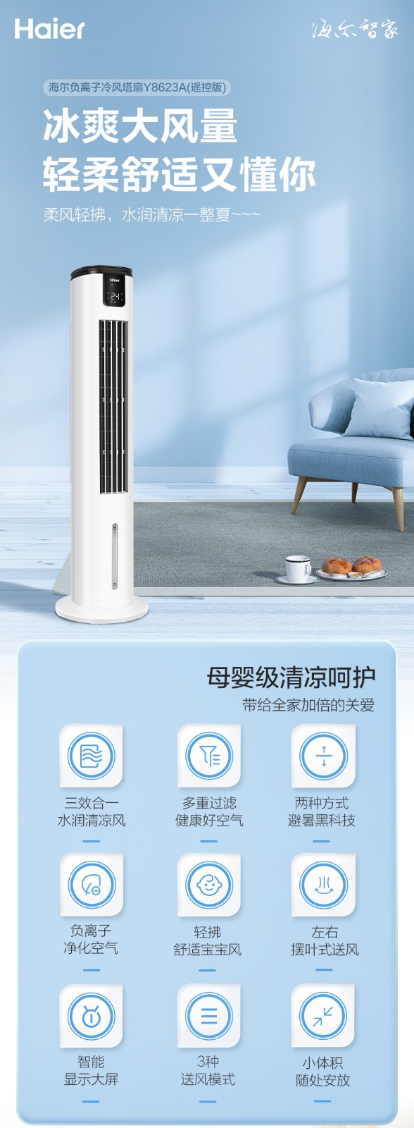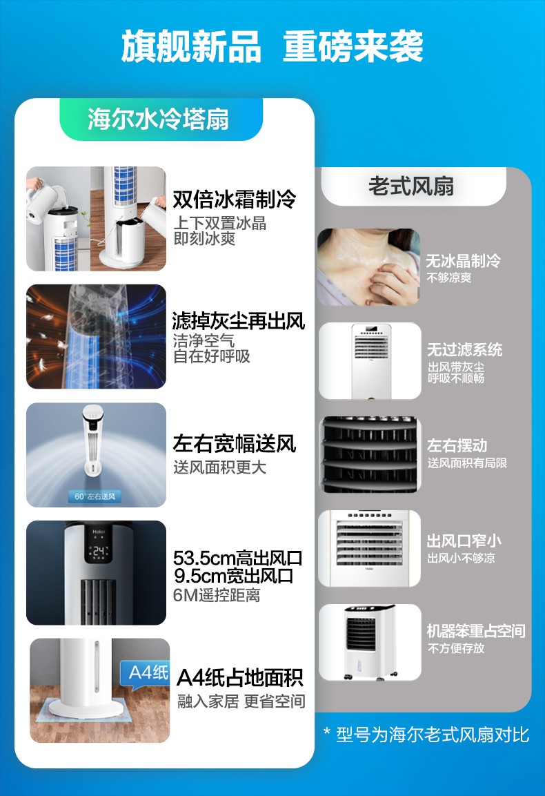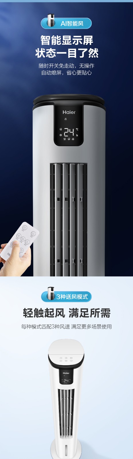 白色-海爾空調(diào)扇制冷電風扇加水冷風機塔扇家用宿舍租房神器移動小空調(diào)