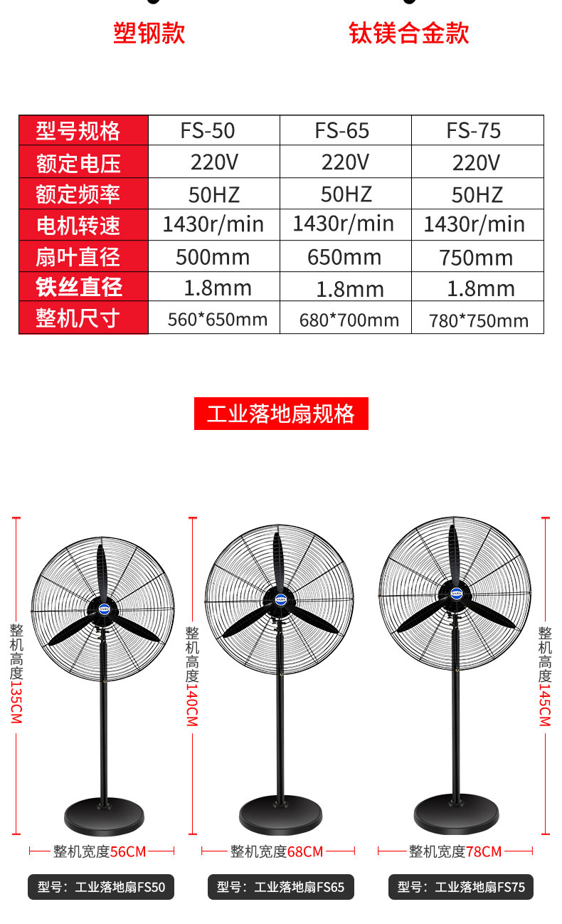 fs650-落地扇鋁鎂扇葉-工業(yè)電風扇強力落地扇大風量牛角扇商用機械大功率車間工廠壁掛扇