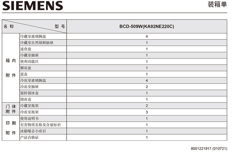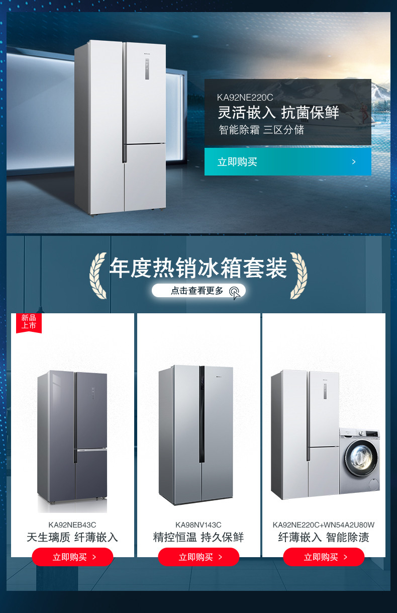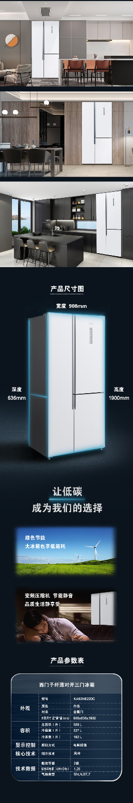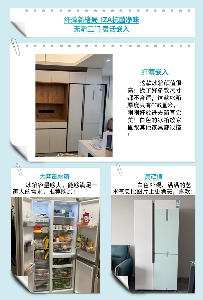 【爆款新品】西門子509L大容量超薄嵌入抗菌對開三門變頻冰箱