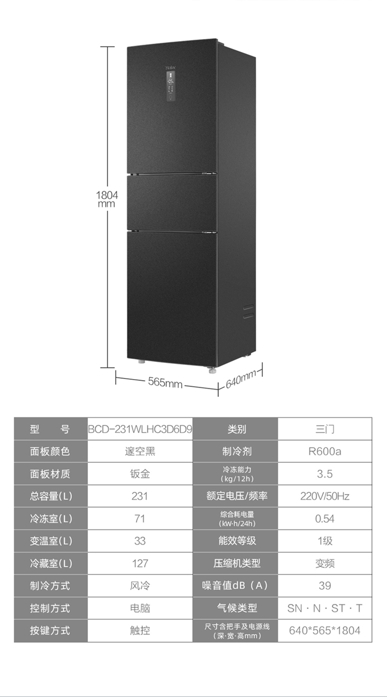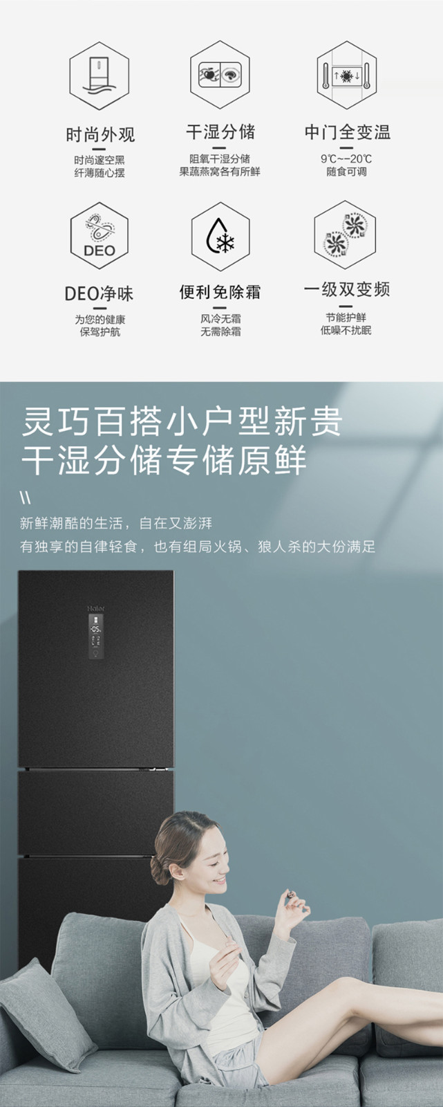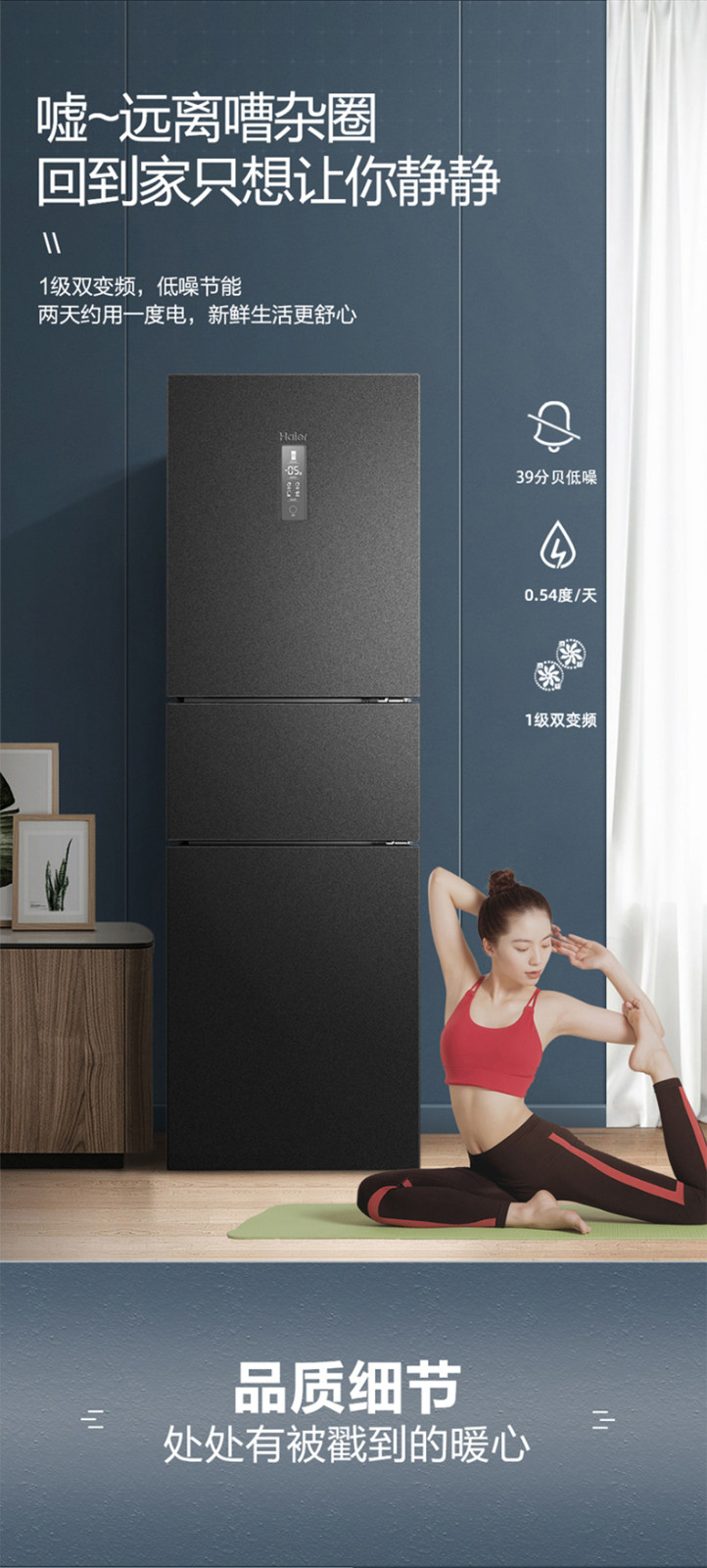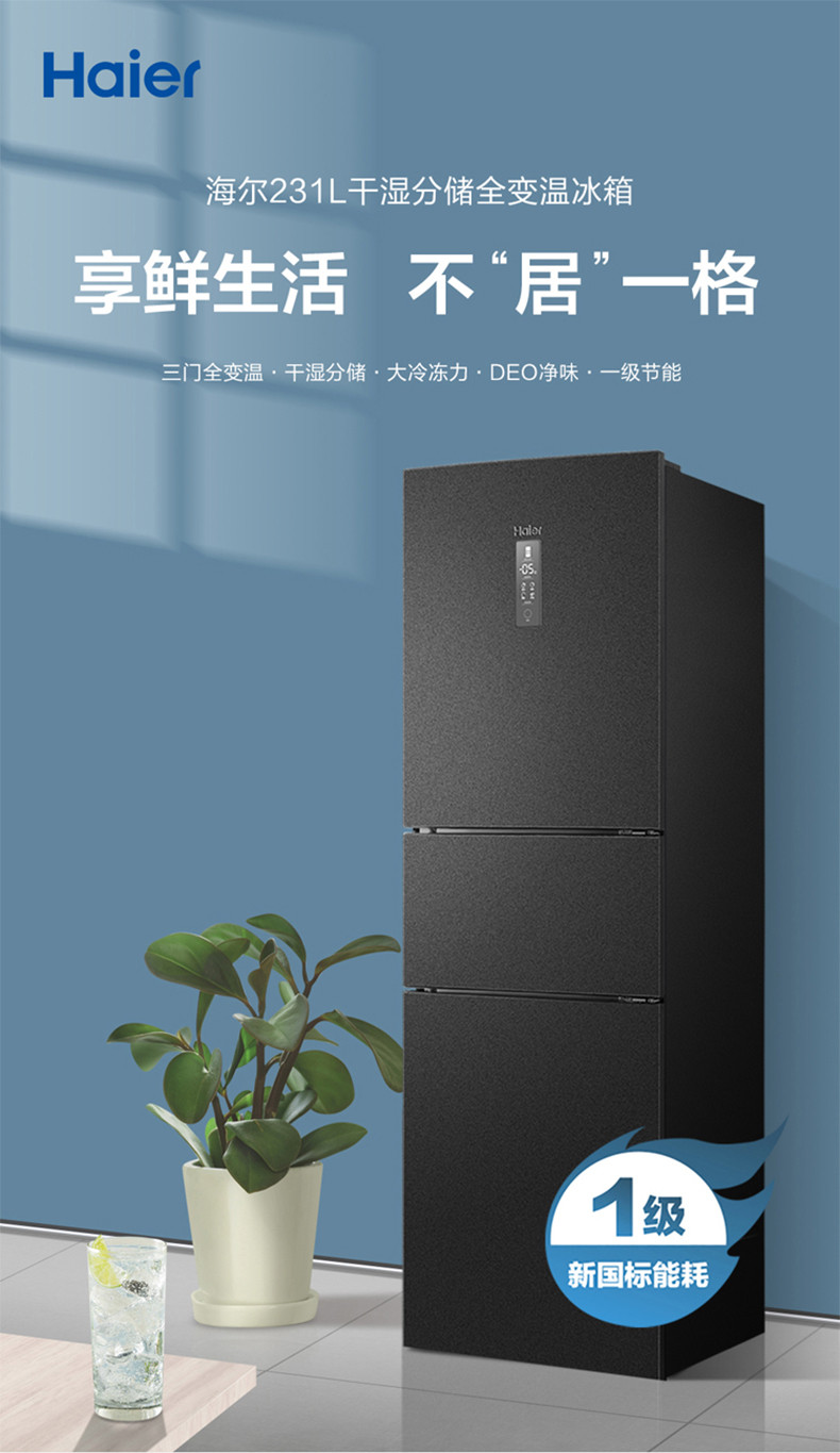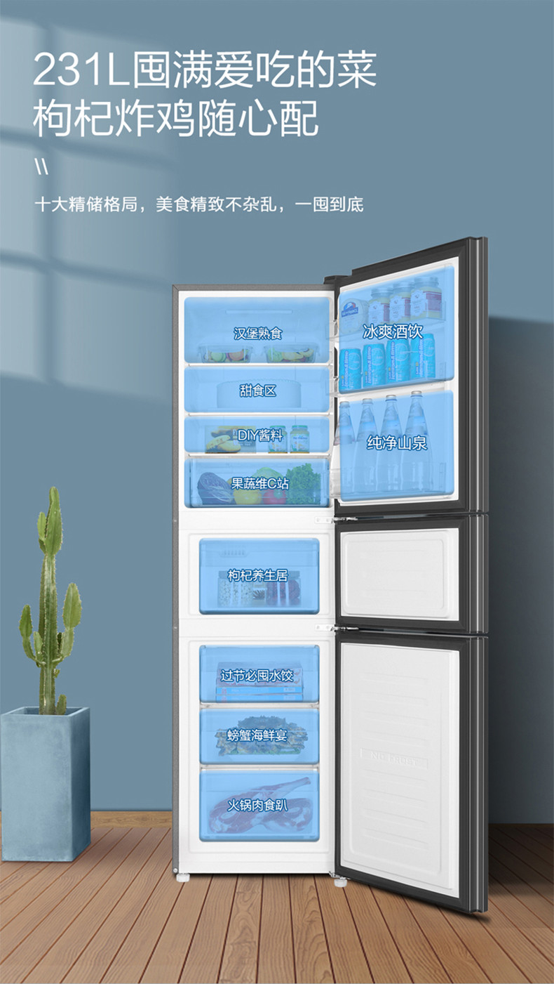 海爾231L三門雙變頻一級節(jié)能風冷無霜小型家用租房冰箱海爾231L三門雙變頻一級節(jié)能風冷無霜小型家用租房冰箱