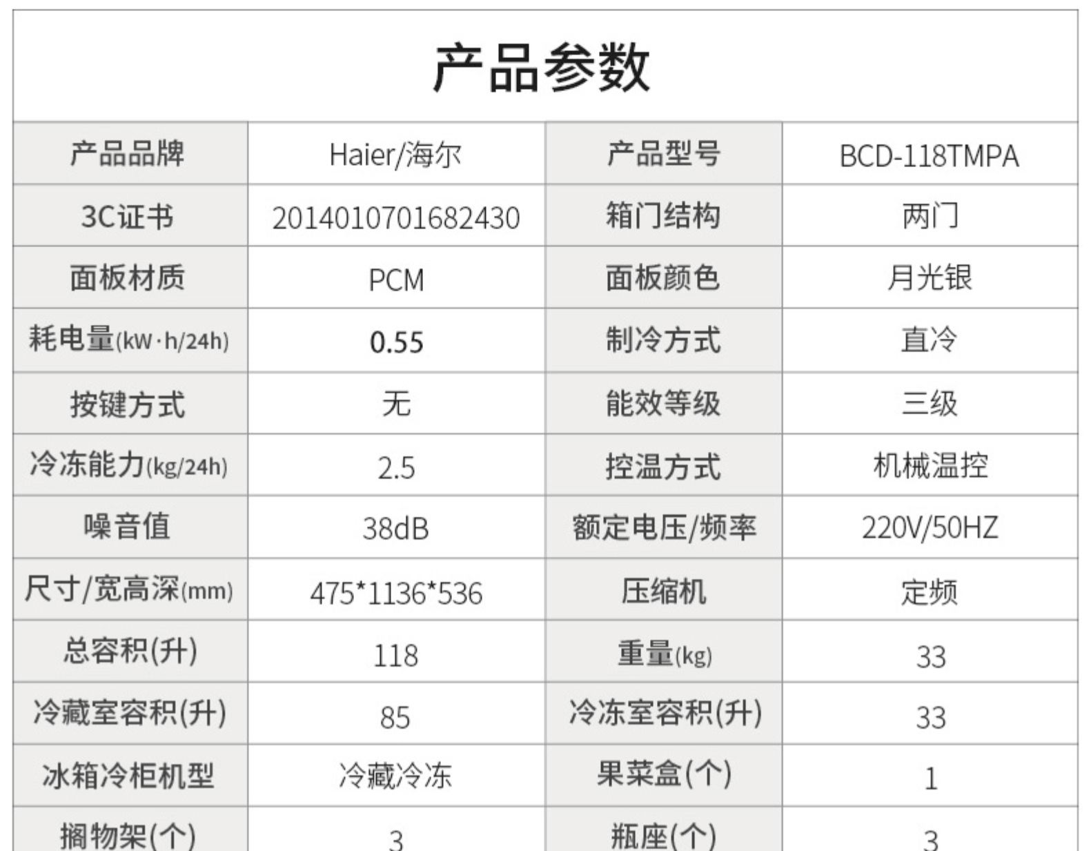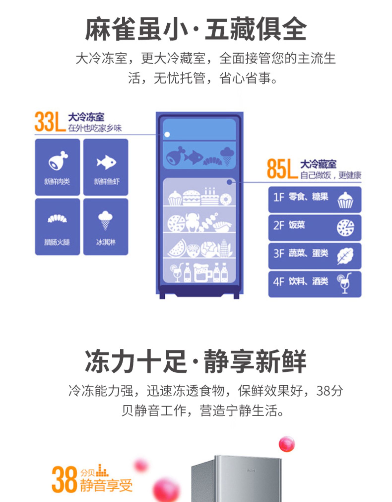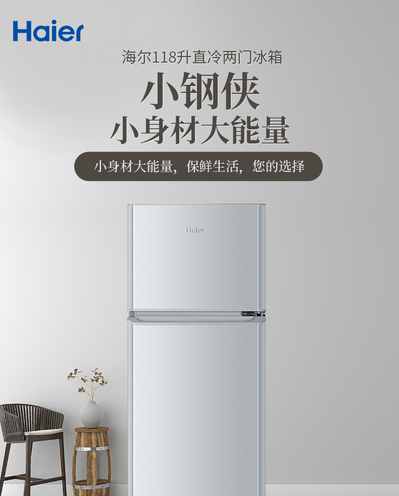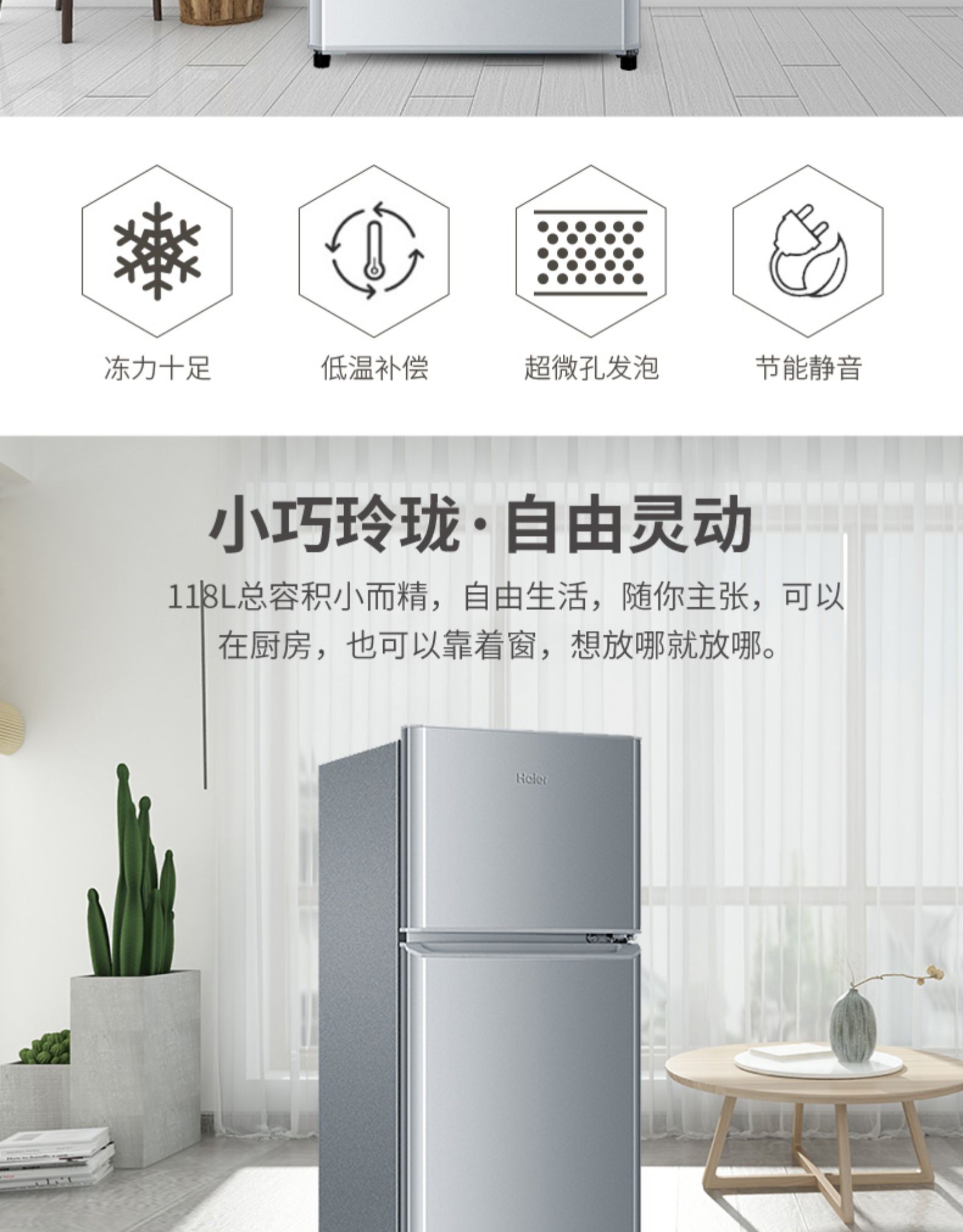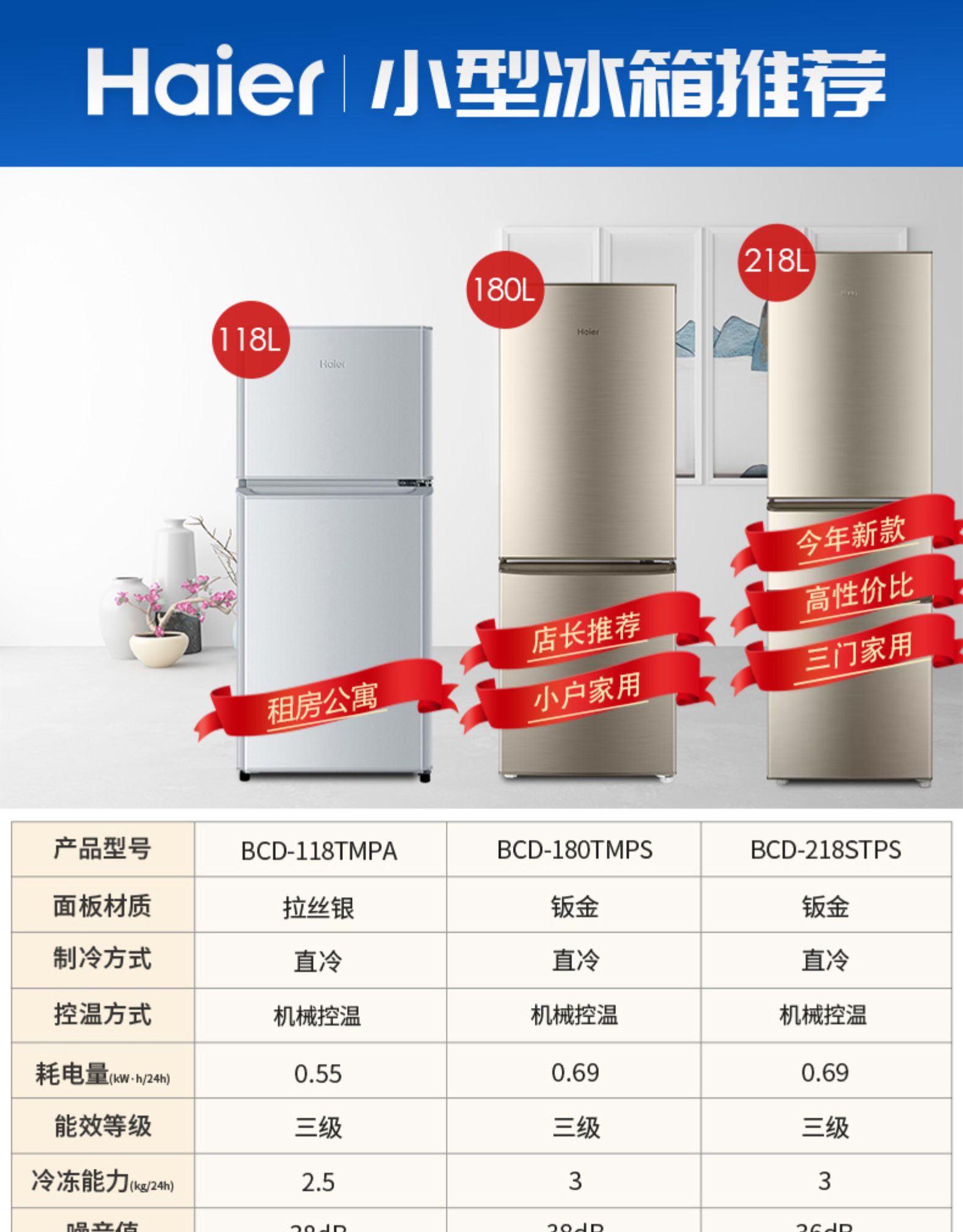 58升-海爾電冰箱兩門180升/118L雙開門家用小型宿舍租房節(jié)能官方旗艦店
