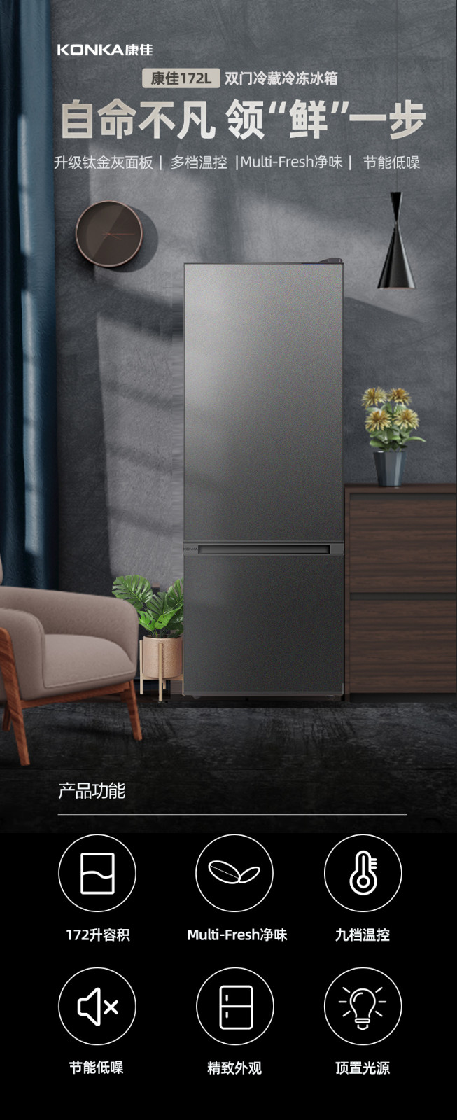 康佳172升雙門冰箱家用節(jié)能兩門小冰箱雙開門冷藏冷凍小型電冰箱
