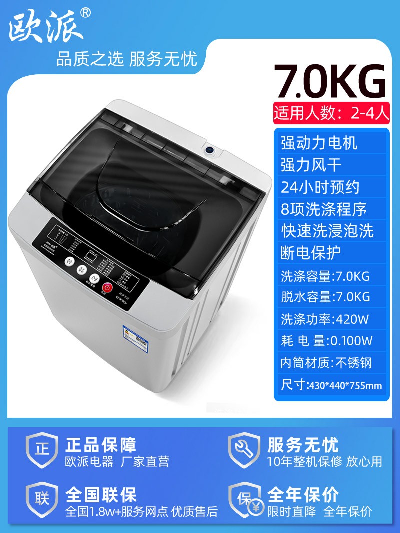 7.0kg-歐派洗衣機全自動波輪10公斤租房家用小型迷你嬰兒烘干脫水一體機