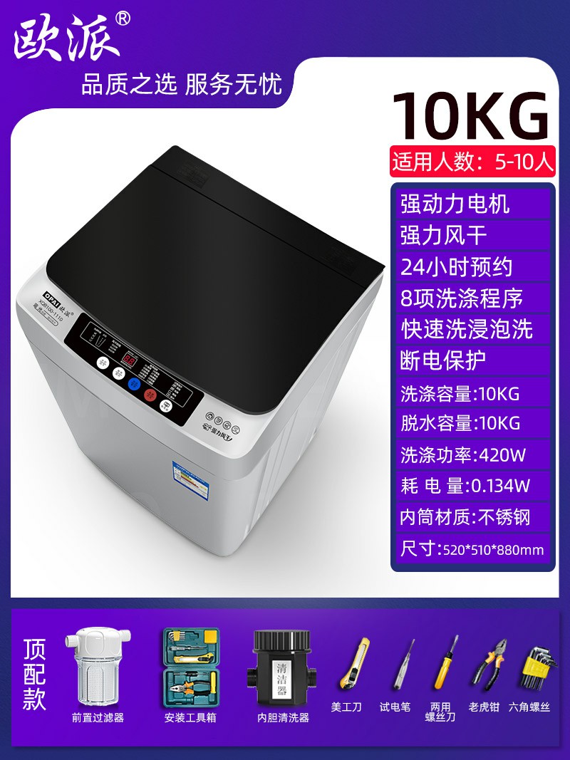 10kg-頂配工具款-歐派洗衣機(jī)全自動(dòng)波輪10公斤租房家用小型迷你嬰兒烘干脫水一體機(jī)
