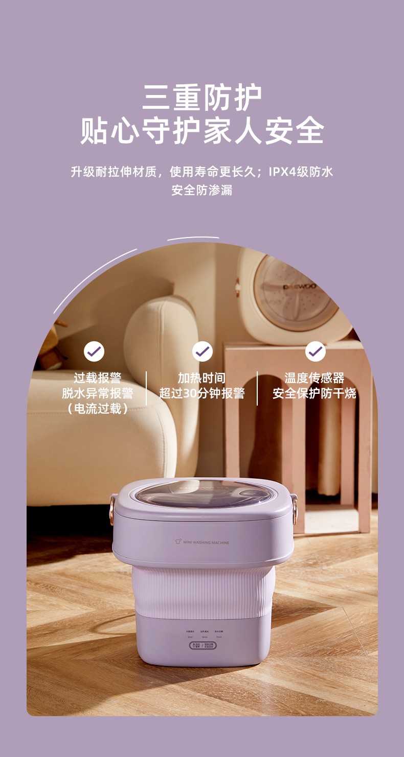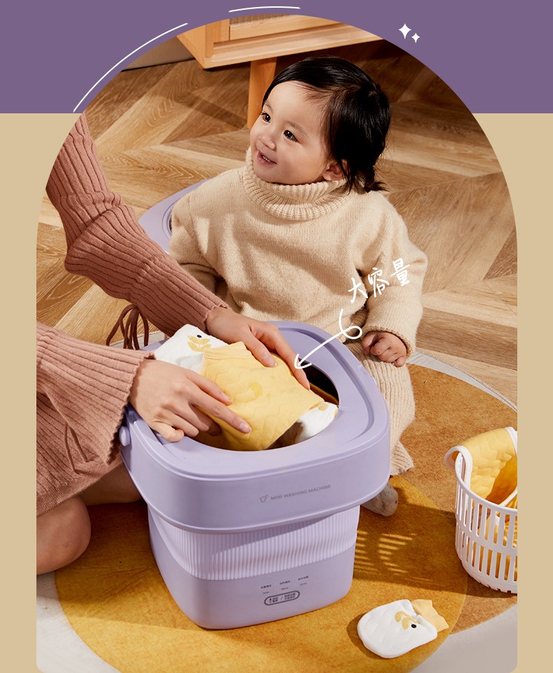 灰藕紫-大宇折疊洗衣機迷你洗衣機內(nèi)衣內(nèi)褲洗襪子神器小型懶人專用清洗機