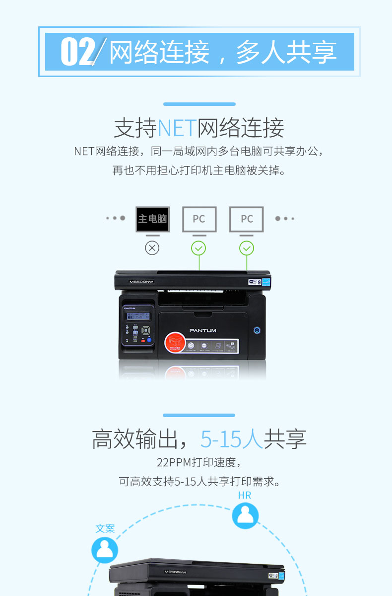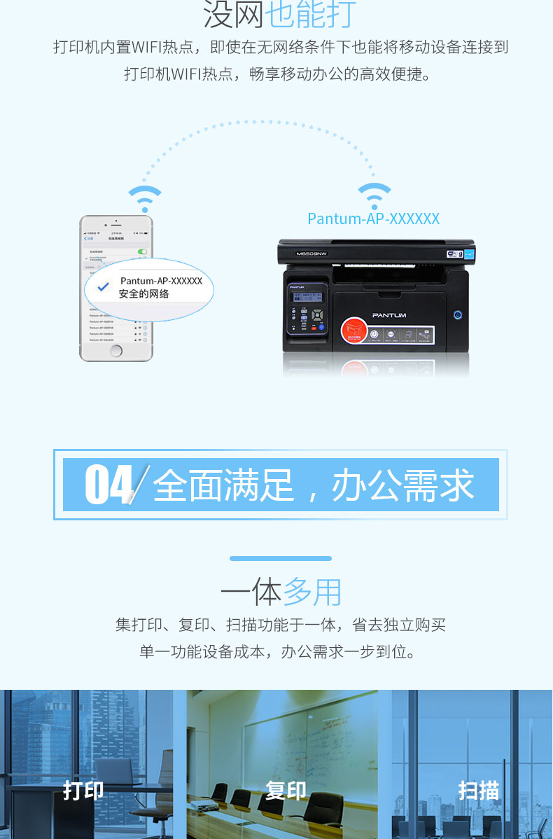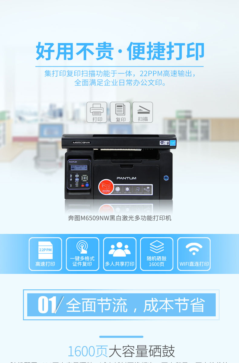 奔圖M6509NW黑白激光多功能一體機(jī) 打印 復(fù)印 掃描三合一打印機(jī)